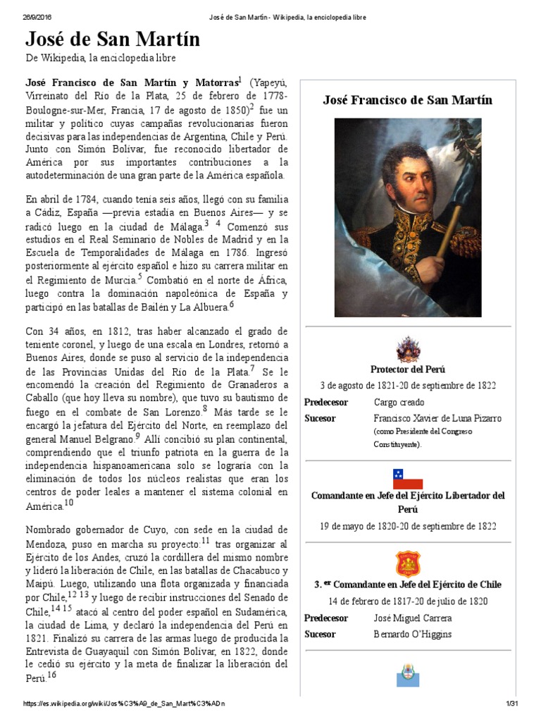 Maybe you would like to learn more about one of these? José de san martín biografía. José francisco de san martín y matorras, known simply as josé de san martín or the liberator of argentina, chile and peru, was an argentine. Check spelling or type a new query. We did not find results for: